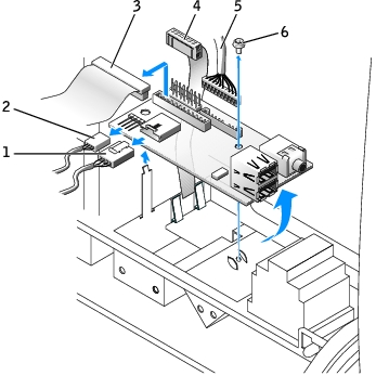 2 | front audio cable | 5 | internal speaker cable |