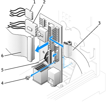 - From inside the computer cover, remove the mounting screw that secures the I/O