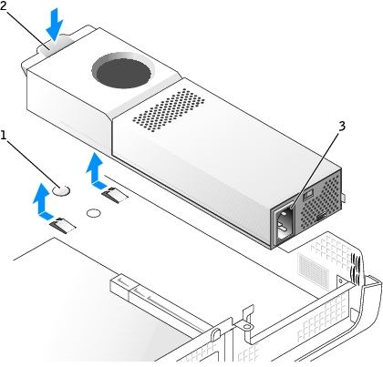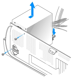 - Slide the power supply toward the front of the computer approximately 1 inch.